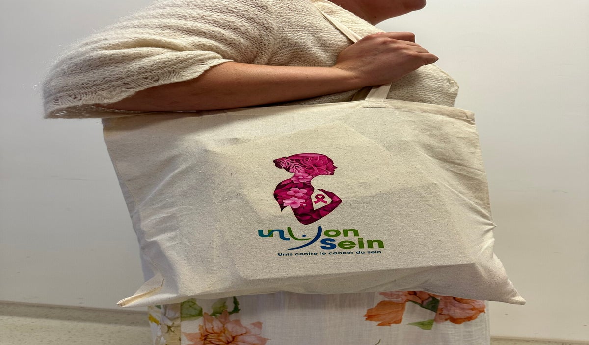 Les tote bags solidaires d'UnyonSein sont destinés à apporter confort et soutien aux patientes atteintes du cancer du sein. Chaque sac contient une trousse de confort, comprenant un oreiller, un masque pour le visage, des boules quies, et une poche à glace. Il inclut également un kit d'art-thérapie pour favoriser le bien-être, une gourde pour rester hydratée, une bale anti-stress, ainsi qu'un mot de réconfort. De plus, des échantillons de produits de soin de Même Cosmétic et Avène sont également offerts pour apporter un moment de douceur aux patientes pendant leur traitement.